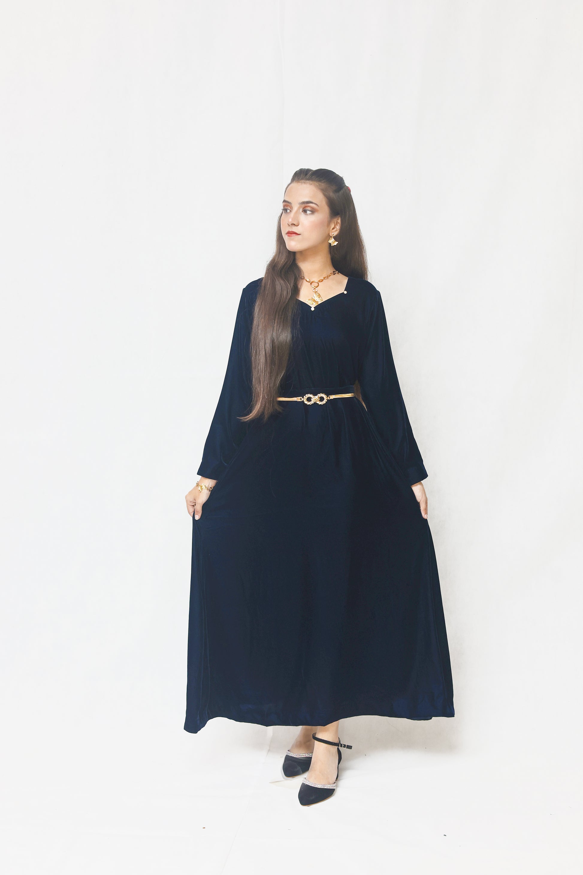 Description: Beautifully crafted with elegant stones on the neckline and a gold-tone belt featuring a double-loop design, adding a touch of luxury to the look.