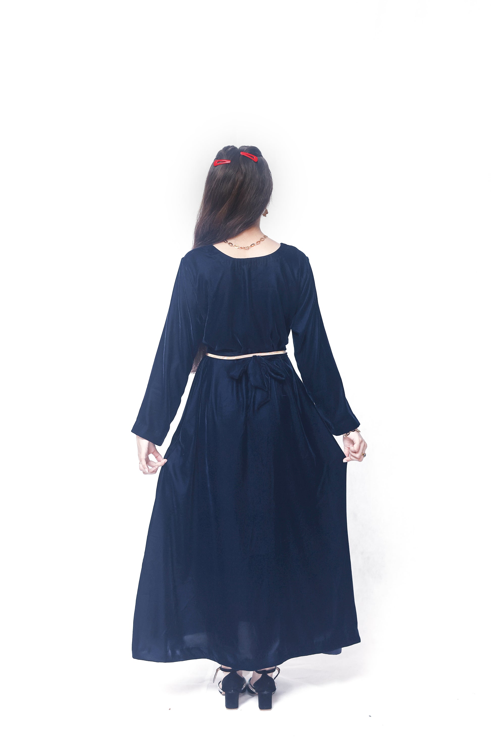 Style: Long maxi with full sleeves — perfect for formal and evening wear